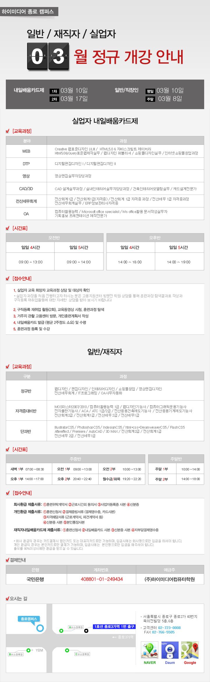 하이미디어컴퓨터학원 종로캠퍼스 3월 개강