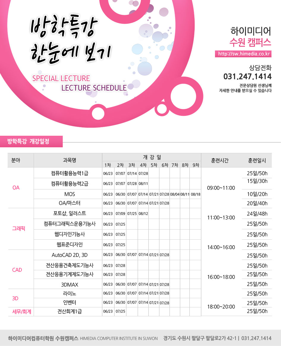 여름방학 특강 안내